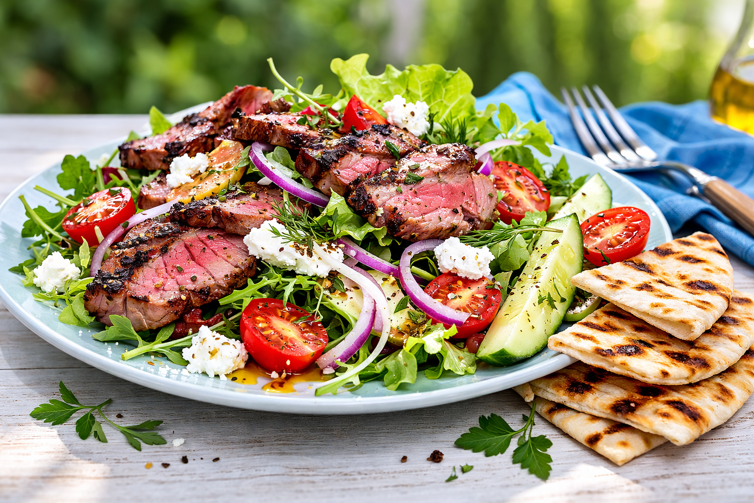 Spring seems as if it might pass us by; if not show up late here in Mammoth Lakes. This has been a record setting winter and we are still grappling with over 600” of snow! The fabulous snow and skiing will most likely remain with us through April, but none the less, the seasonal change conjures up visions of fresh sweet peas, salads and seeing the start of green sprigs in the ground from our herb garden and a trend toward more light fare. In light of our warmth-challenged spring, I am sharing a Lamb salad with the lightness of spring yet the heartiness of lamb as an entrée.