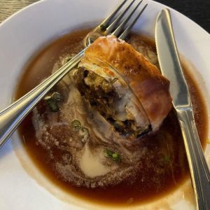 Golden and delicately layered, the pastry gave way to a filling that was at once earthy, aromatic, and startlingly alive with flavor. It was the kind of appetizer that didn’t merely precede a meal: it defined it.