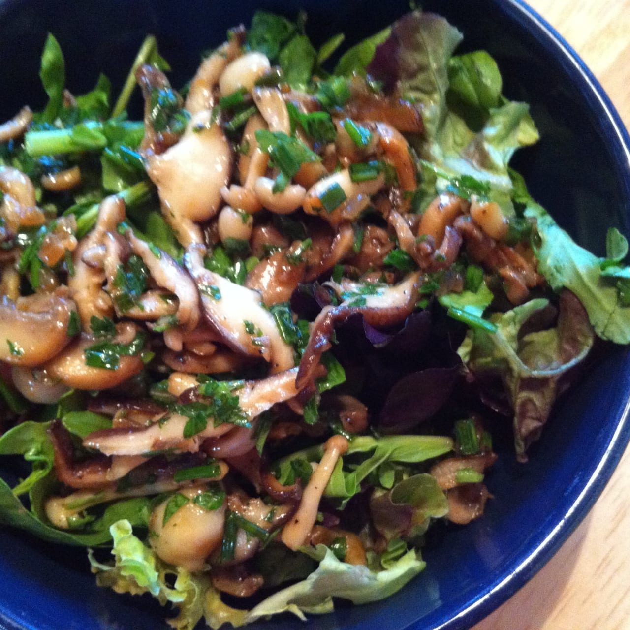 Sauté shallots and mushrooms in olive oil for a few minutes, until shallots are becoming clear and mushrooms are shrinking and tender. Then add balsamic vinegar and stir. Remove from heat and let cool to room temperature.